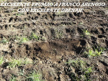 Suelos: El predio tiene excelentes suelos profundos, de características Trumaos a Franco Arenoso con excelente drenaje, aptos para Frutales sin Limitaciones como Cerezos, Nogales, Avellanos europeos, Arándanos, Kiwis, Manzanos y cultivos en General
