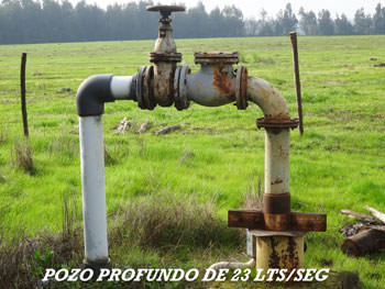Derechos de Agua: El campo cuenta con Derechos de Agua para el riego del predio, el cual consiste en 70 Lts/seg, incluido 1 Pozo profundo de 23 Lts/Seg, inscrito, 1 Pozo zanja de 150 mts largo x 6 mts ancho y 6 de profundidad y gran Tranque de 2 Has con 300.000 M3 de capacidad. Caseta de Riego Tecnificado con sistema de Fertirriego para las 42 Has de viña, la cual se encuentra plantada a 2,5 mts entre hilera, por lo que podría usarse para plantación de Arándanos.