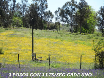 Derechos de Agua: El predio no cuenta con derechos de agua, pero existen 2 pozos con 3 Lts/seg cada uno, de solo 20 mts de profundidad, que no se han inscritos a la fecha y gran tranque con profundidad de 8 mts desde el espejo de agua, el que corresponde a aguas subterráneas que afloran solas y también cuenta con buena recepción de aguas lluvias.-