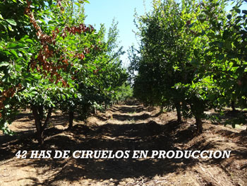 - Ciruelos variedad DÁgen en 32 Has con 9 años y 10 Has de 5 años. todo en producción, con producciones de 30 Ton/Ha