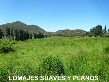 Características: Este predio es de Lomajes suaves y planos aprovechable en el 100% de su superficie. Hay solo 4 has sobre la cota de riego. El predio esta separado por camino vecinal de muy poco uso,