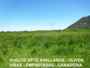 Suelos: El predio tiene suelos de tipo Franco Arcilloso suave, apto Frutales como Viñas, Avellanos, Olivos, Cultivos en General, Empastadas y Ganadería