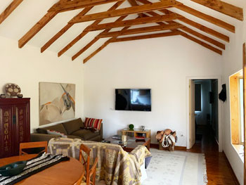 - 1 Casa Principal de madera con tronco medialuna, cubierta tejas asfálticas, con 2 dormitorios, living comedor –cocina americana y baño de 60 M2,