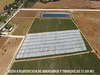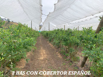 - 12,5 Has de Arándanos variedades: STAR, EMERALD, DUKE, O´NEAL, MISTY, con marco de plantación 2,8 x 0,7 mts, con 2 Has con cubierta española, todo con Riego Tecnificado y doble línea de goteros, plantados años 2007 – 2010.