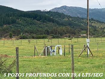 Derechos de Agua: Cuenta con Tranque de acumulación de aguas lluvias de 17.556 M3 totalmente revestido con lamina de Pilietileno de alta densidad HDP y además cuenta con 2 Pozos profundos con 11,0 Lts/seg de ejercicio permanentes y continuos de Derechos de Aguas inscritos en la DGA y 3 Pozos profundos con 18,4 Lts/Seg de ejercicio permanente y continuos inscritos de carácter provisional, 1 Caseta de riego de albañilería con piso de concreto, Sistema de Riego por goteo y Fertirriego compuesto por 2 Filtros de retro lavados marca Odis Matic con sus motores y bombas y Piscina de acumulación de 42 M2.