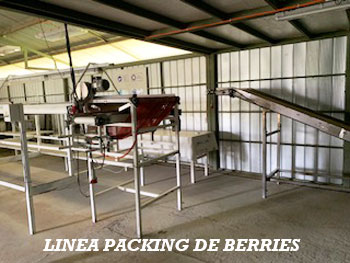 - 1 Línea de Packing completa con envasadora automática para Berries, marca PONY Argentina con capacidad de proceso de 6000 Kgs. Días. Todo el Packing con una superficie cerrada de 400 M2