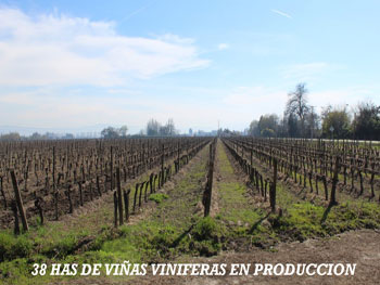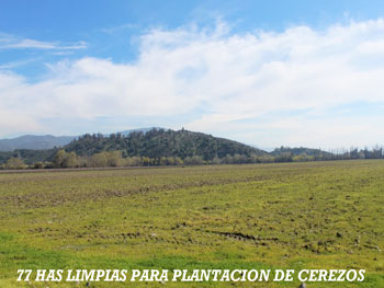 Características: Es un buen campo de 115 has de suelos Planos todas de riego, en una zona con excelente clima para cosechas Tempranas de Cerezos, hay 77 Has sin plantaciones y 38 Has dedicadas en la actualidad a la producción de viña vinífera, con las siguientes variedades: