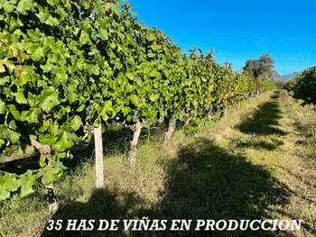 Hay 35 Has de Viñas en producción, con producción anual de 500.000 Kg. y con las siguientes variedades: