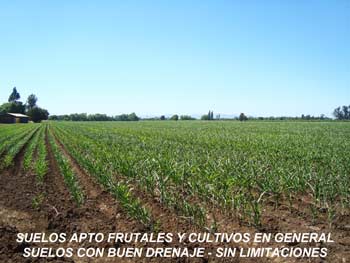 Suelos: Tiene suelos de tipo Franco a Franco arcilloso suave, profundo, con buen drenaje, aptos para Frutales como Cerezos, Viñas, Manzanos, Perales, Kiwis, Avellanos, Etc., Cultivos en general, empastadas y Ganadería.