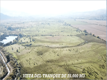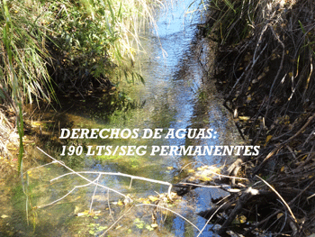 Derechos de Agua: El predio cuenta con Derechos de Agua superficiales equivalentes a 190 Lts/Sg. de Canal Melozal. El sistema de riego tecnificado esta instalado en 60 Has. Cuanta con 1 Tranque de acumulación para 25.000 m3.