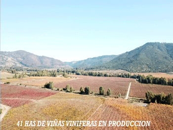 Características: Predio dedicado a plantación de Uvas viníferas en 41 Has plantado en sistema de parrón y en espalderas, de cepas finas y clones seleccionad todo con Riego Tecnificado y sistema de Fertiriego y cultivos anuales, como siembra de Maíz semillero y Tomate industrial, Trigo. De topografía plana y Lomajes plantables en el 100% de la superficie.-