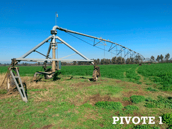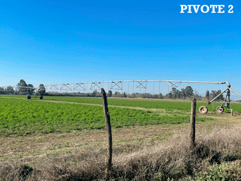 El predio cuenta con 2 Pivotes de riego circular, Marca Zimatic, operando perfectamente con todos sus equipos, con dos posturas cada uno, lo que permite regar 50 Has.