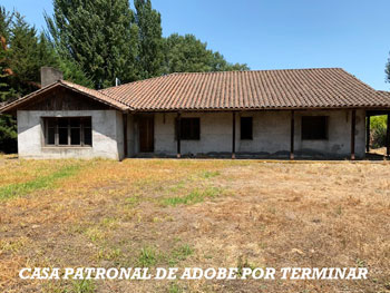 Construcciones: Tiene 1 Casa Patronal de adobe en construcción, 1 casa de empleado, 2 galpones y piscina de acumulación para el sistema de riego.